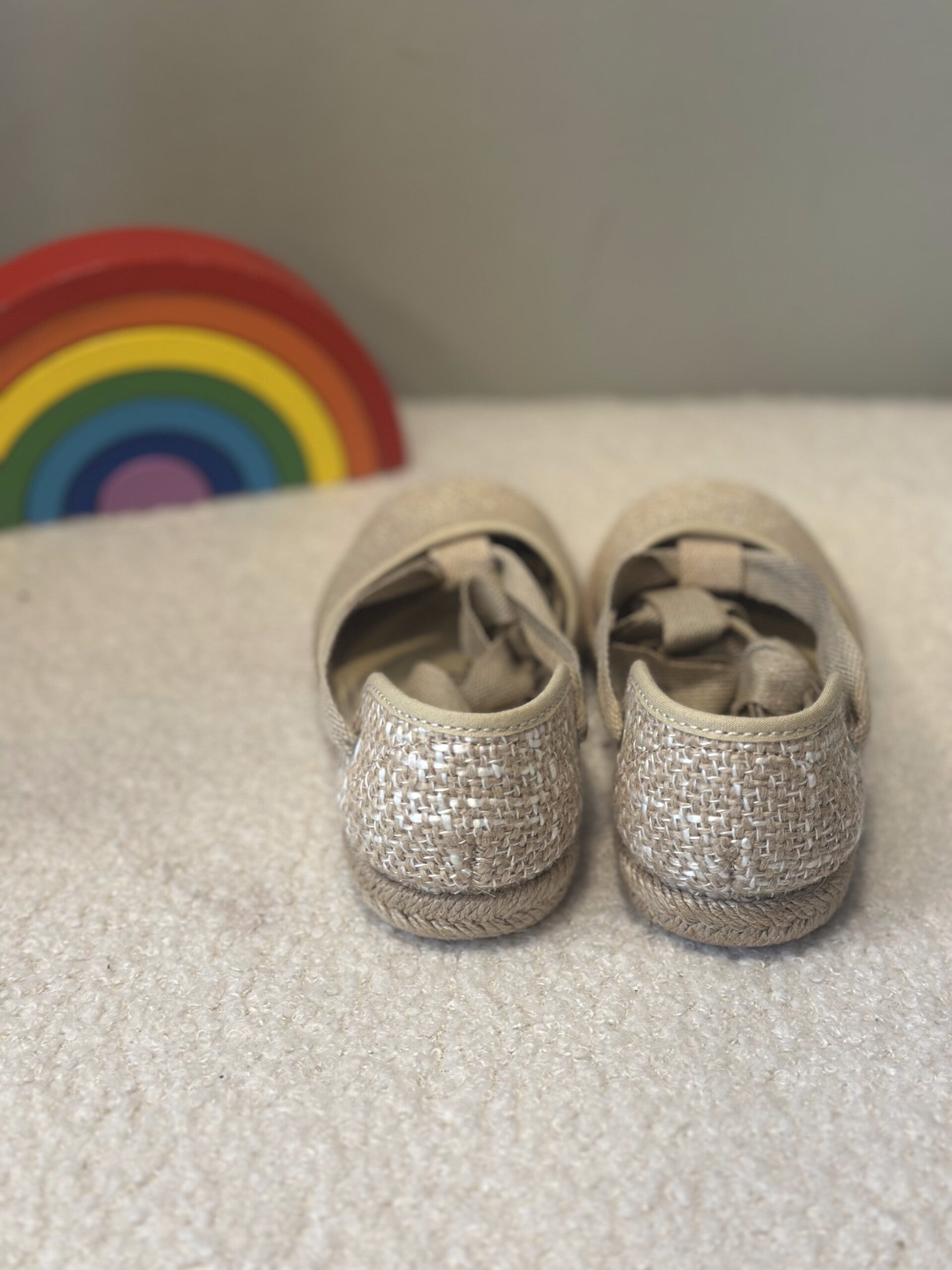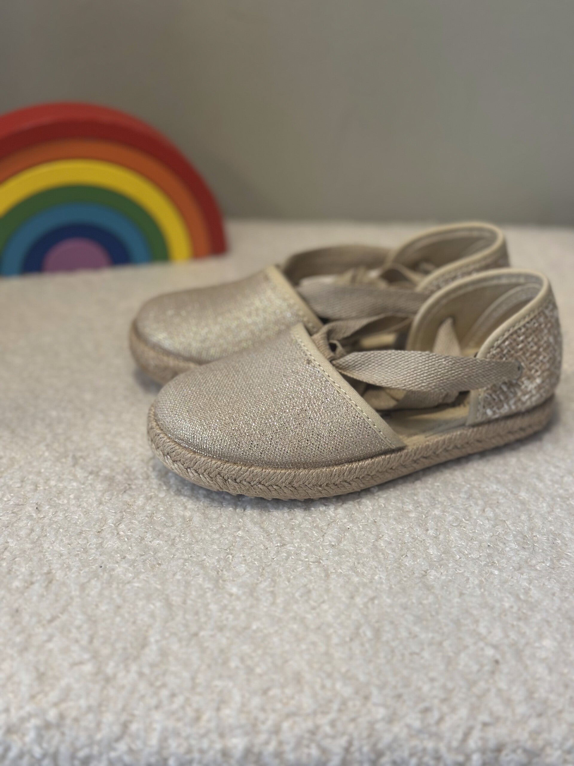 Espadrillas con glitter e lacci, perfette per il tempo libero.